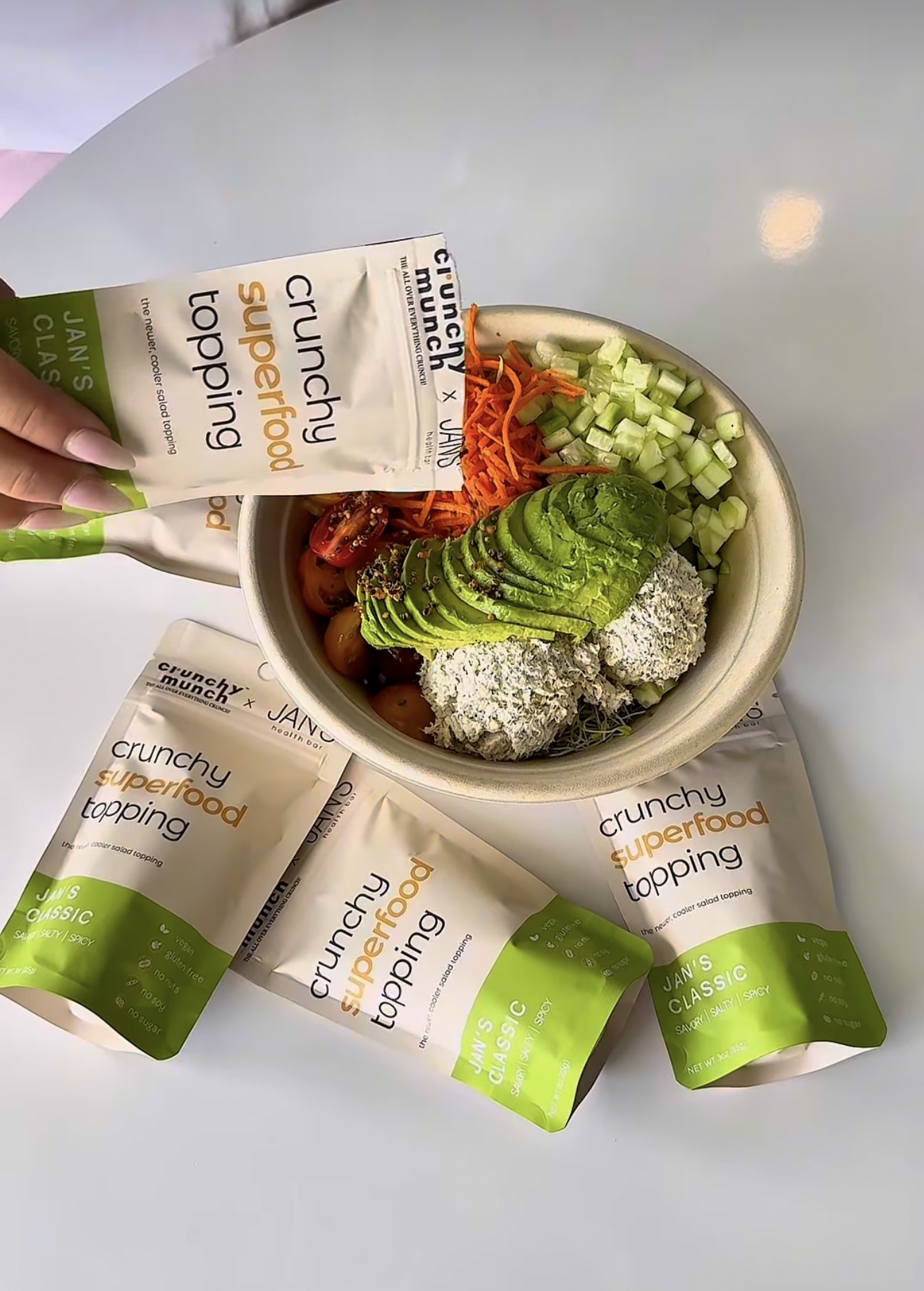 We created Crunchy Munch to make our own salads more exciting, but soon discovered people were adding it to soups, avocado toast, proteins, sandwiches, and more.